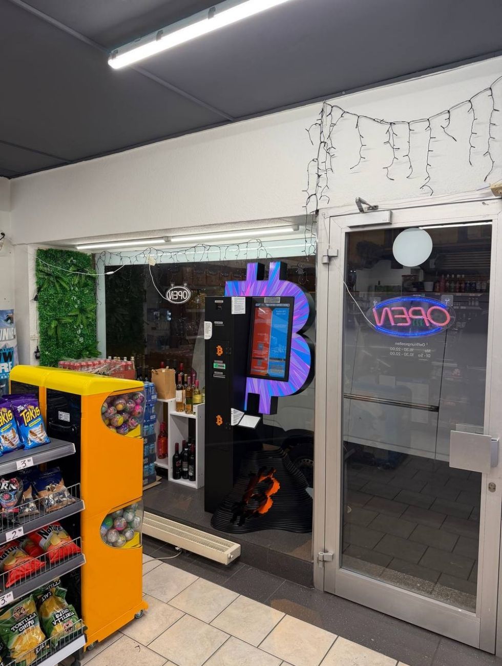 Bitcoinomat znajduje się w sklepie Vasa Lebensmittel z wejściem od ulicy.