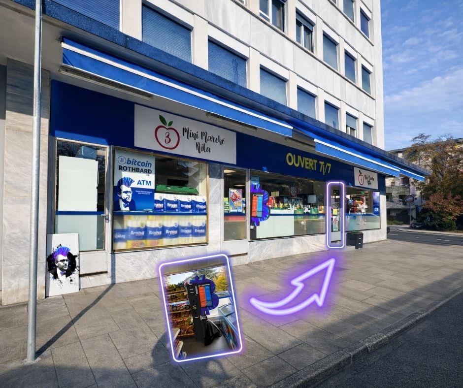 Bitomat znajduje się bezpośrednio w środku sklepu Mini Marché Nila.