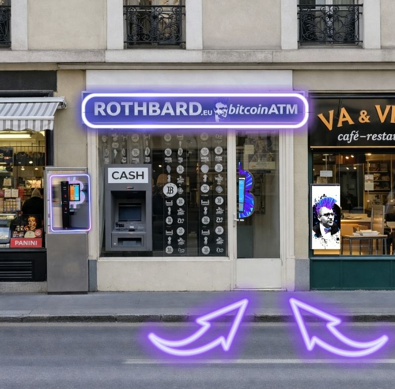 Bitomat znajduje się pomiędzy sklepem "Tabacepicerie Du Musee" a restauracją "Va & Vient".